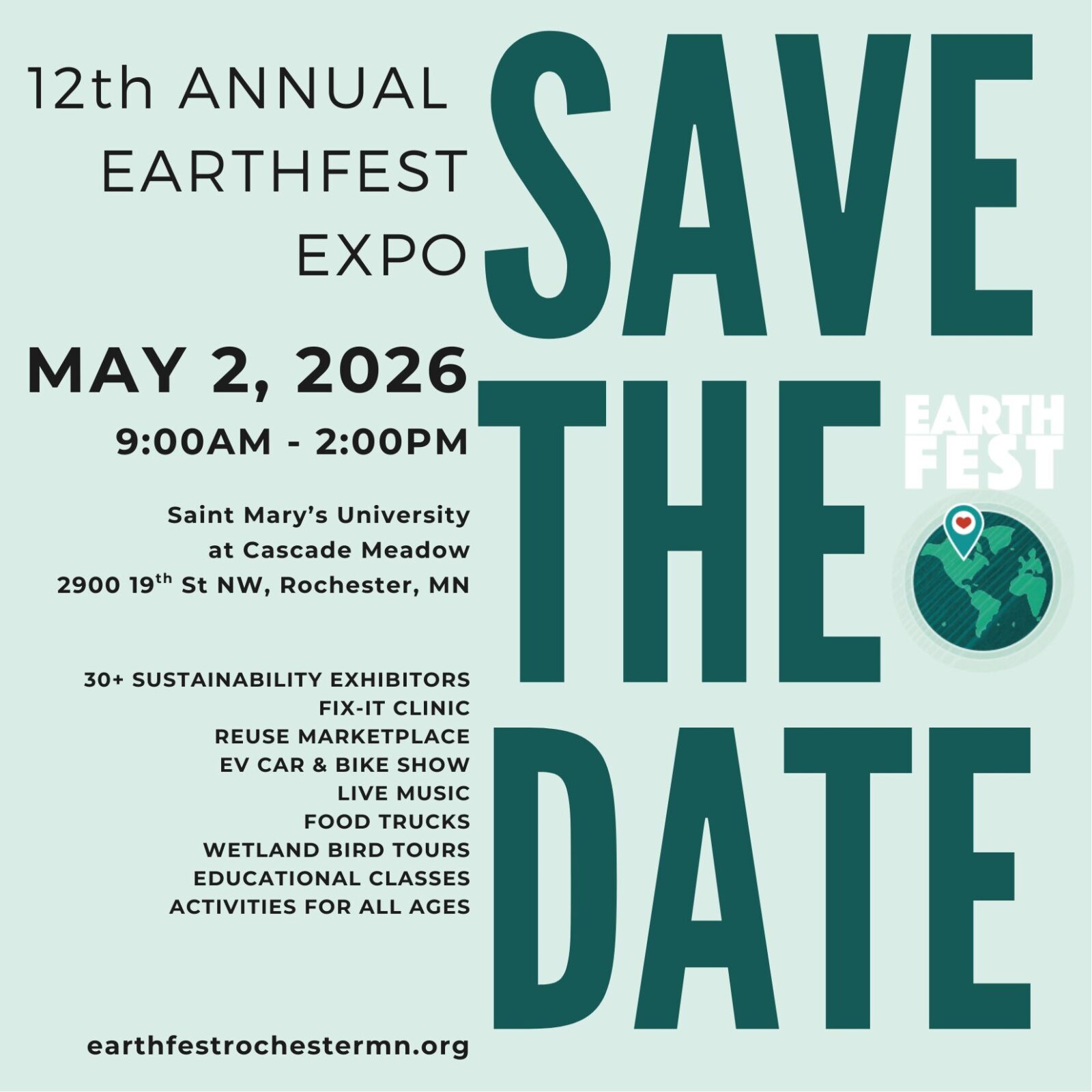 EarthFest Expo is Rochester’s premier sustainability celebration bringing together community members, local organizations, and environmental leaders for a high-energy day of learning, connection, and action. Explore engaging exhibits, hands-on workshops, interactive activities, and inspiring conversations designed to help build a greener future for Rochester.